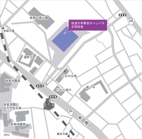 丸ノ内線茗荷谷(みょうがだに)駅下車「出口1」徒歩2分 改札を春日通リ側に出て、斜め左に見える交番の左側に入っていくと筑波大学東京キャンパスがございます。 ■住所 〒112-0012 東京都文京区大塚3-29-1 GoogleMapで見る ![]()